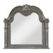 The luxurious grandeur that permeates the design of the Bennington Collection is an amalgamation of classic accenting and traditional lines. The elegant framing of the mirror follows the design of the rest of the collection, providing a timeless accent to your space, with acanthus leaf carving, decorative scrolling, bead molding, and elegant framing account for its beautiful profile. The gray finish, over acacia veneer, features subtle silver tipping for final luxurious accent.