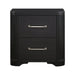 Elegant modern styling comprises the design of the Gilbert Collection while drawing subtle inspiration from the Art Deco movement. The oak veneer of the collection features a charcoal finish providing a rich hue to the distinct wood grain. Polished brass-tone bar pulls center each drawer of the nightstand for complementing contrast.