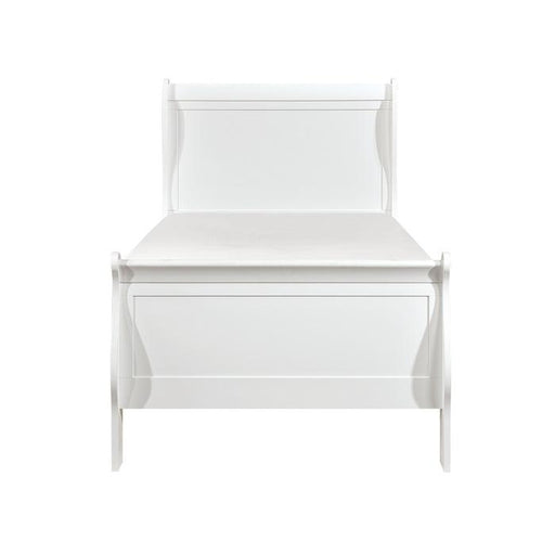 Homelegance (Fremont Warehouse)Mayville Collection by Homelegance Furniture White finish Sleigh headboard and footboard Distinct framing This bed requires a boxspring 41.5 x 84...