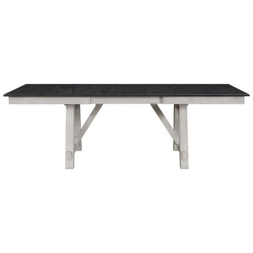 ACME EastRocky Collection by Acme Furniture Gray Oak finish Trestle base Oak veneer Includes 2 18" leaves 82W x 44D x 30H (closed) 100W x 44D x 30H (one l...