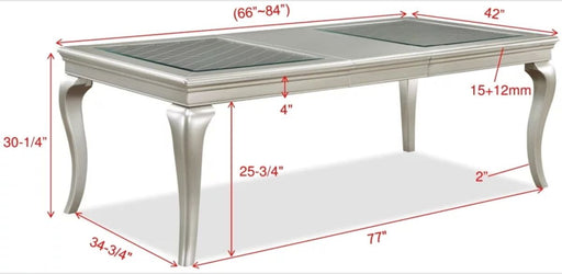 Homelegance (Fremont Warehouse)Orsina Collection by Homelegance Silver finish Made of Manmade wood, mirror and wood Separate extension leaf Table extends by pulling both ends an...