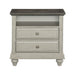 In nod to modern farmhouse design, the Mossbrook Collection features a classic profile that will be a perfect addition to your home’s décor. The pine solids and oak veneer of the collection feature a light gray finish, subtly highlighting the wood’s grain. The dark brown top of the nightstand provides contrast, as do the antique pewter tone knobs that front the drawers. An open display shelf lends additional functionality to the piece. 27 x 17 x 27H